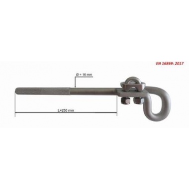 Stainless Steel Round Bar Ø16 mm Eyebolt - OPEN EYE and Integral Clamp L= 250 mm